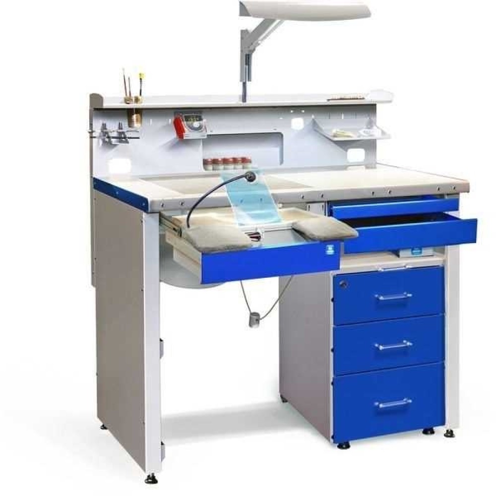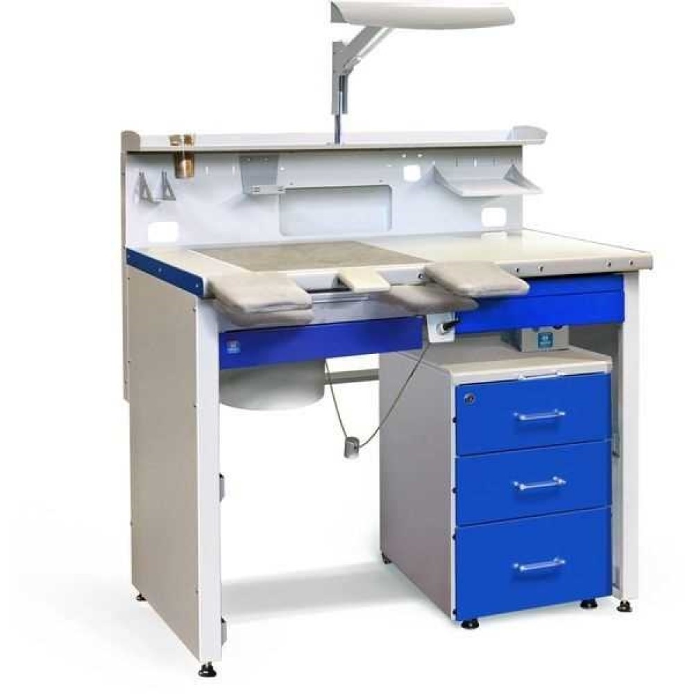 Бестселлер среди столов зубных техников. Современное эргономичное рабочее место для любых видов зуботехнических работ. Наиболее популярная комплектация среди зубных техников России и СНГ.