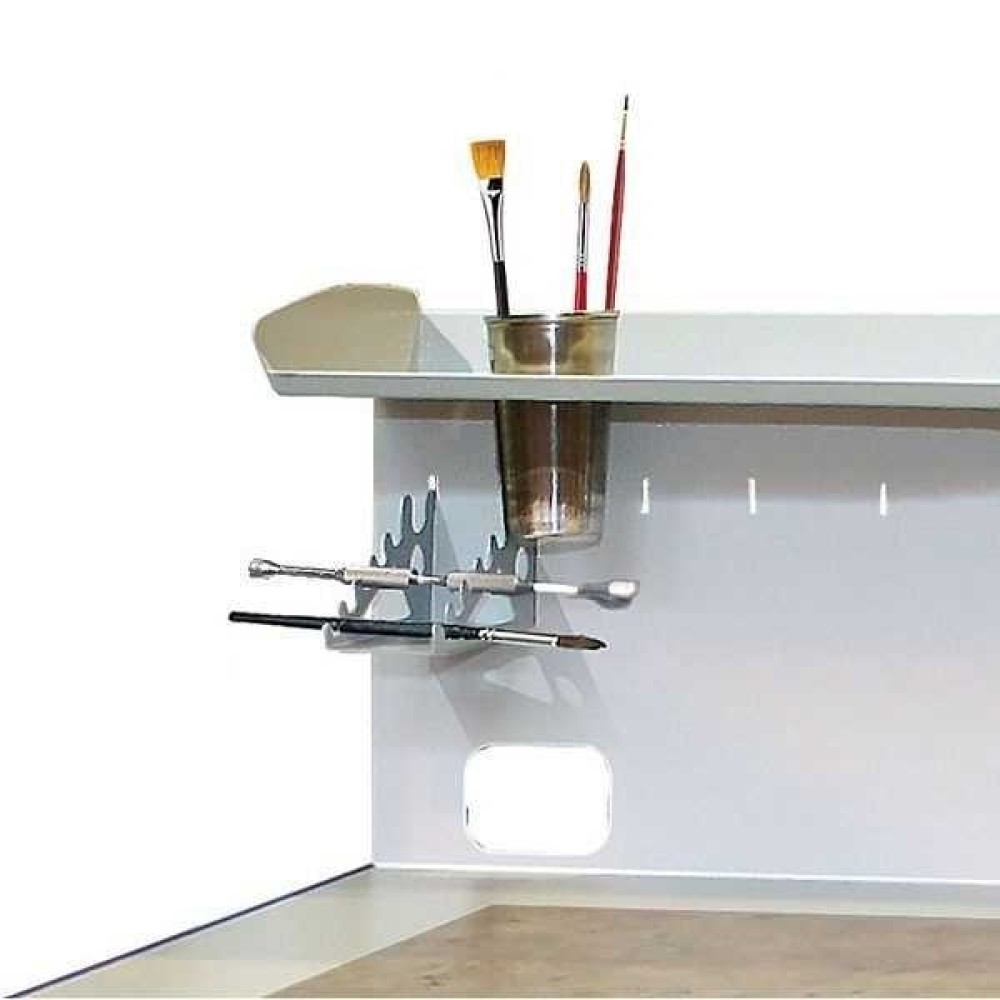 - Горизонтальная и наклонная полки на задней многофункциональной стенке для размещения материалов и работ,