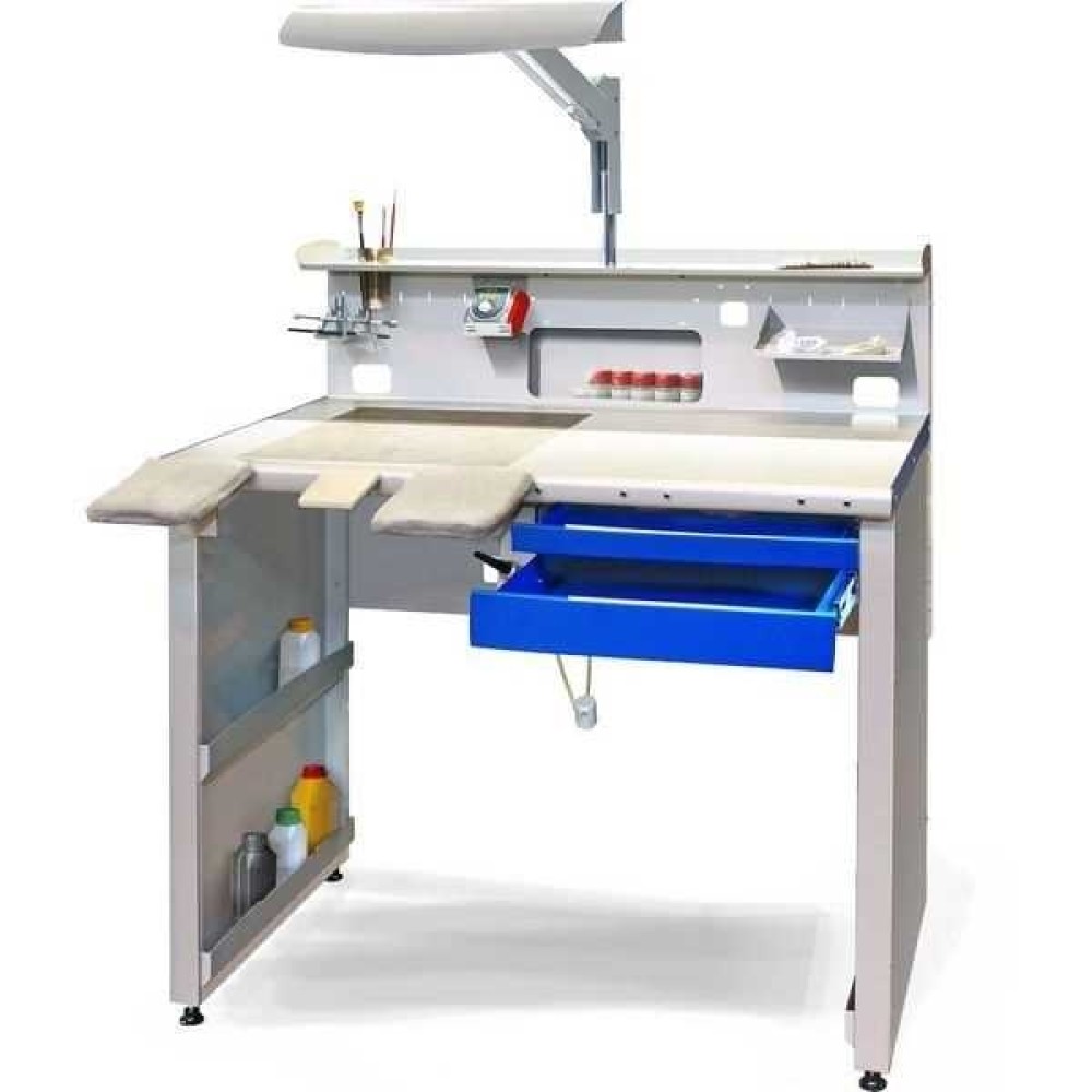 В максимальной комплектации стол средних размеров превращается в полноценное рабочее место, пригодное для множества зуботехнических работ.