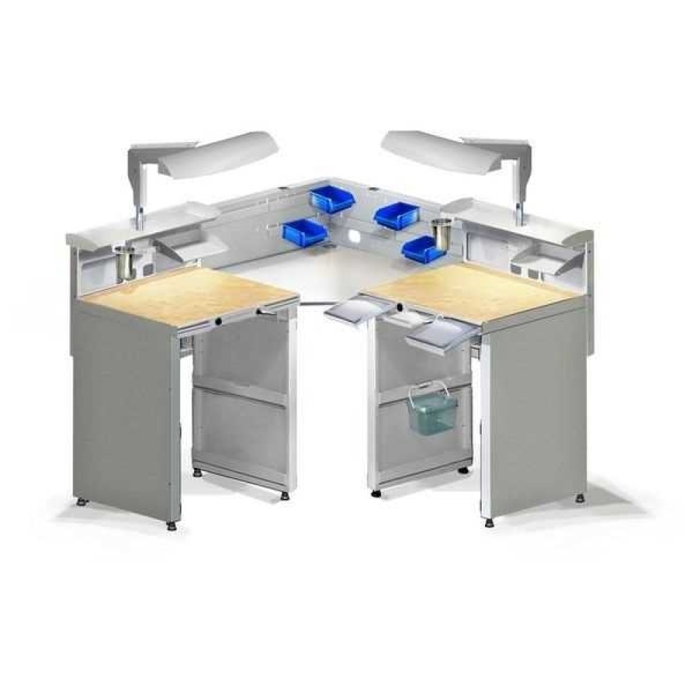Угловой стол для зубного техника на 2 рабочие зоны.