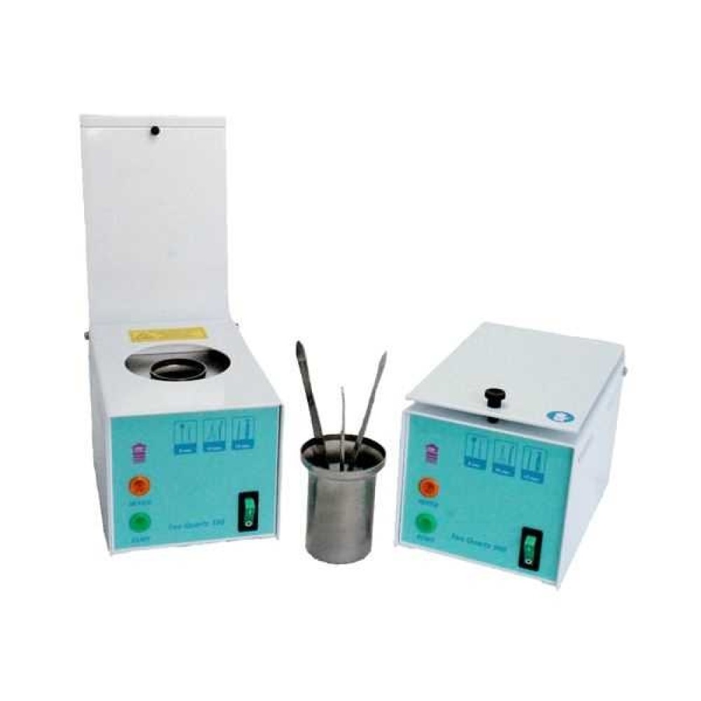 Стерилизатор гласперленовый используется для стерилизации эндодонтических инструментов и для мелких инструментов любого другого назначения (орто-, медицинских, хирургических, косметических и др.) Стерилизация происходит посредством обработки медицинского инструмента высокой температурой. Для этого используется металлический стакан с наполнителем (стеклянные шарики диаметром 2 мм). Электрический тэн нагревает колбу, в которой находятся инструменты. Передача тепла происходит через наполнитель. Стерилизатор выпускается в двух вариантах в зависимости от размеров цилиндра.