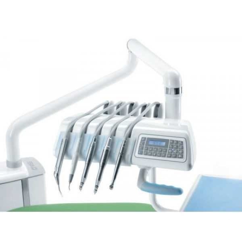 - Свободный держатель для дополнительного инструмента: пистолет вода-воздух, полимеризационная лампа, интраоральная камера или эжекторный слюноотсос.