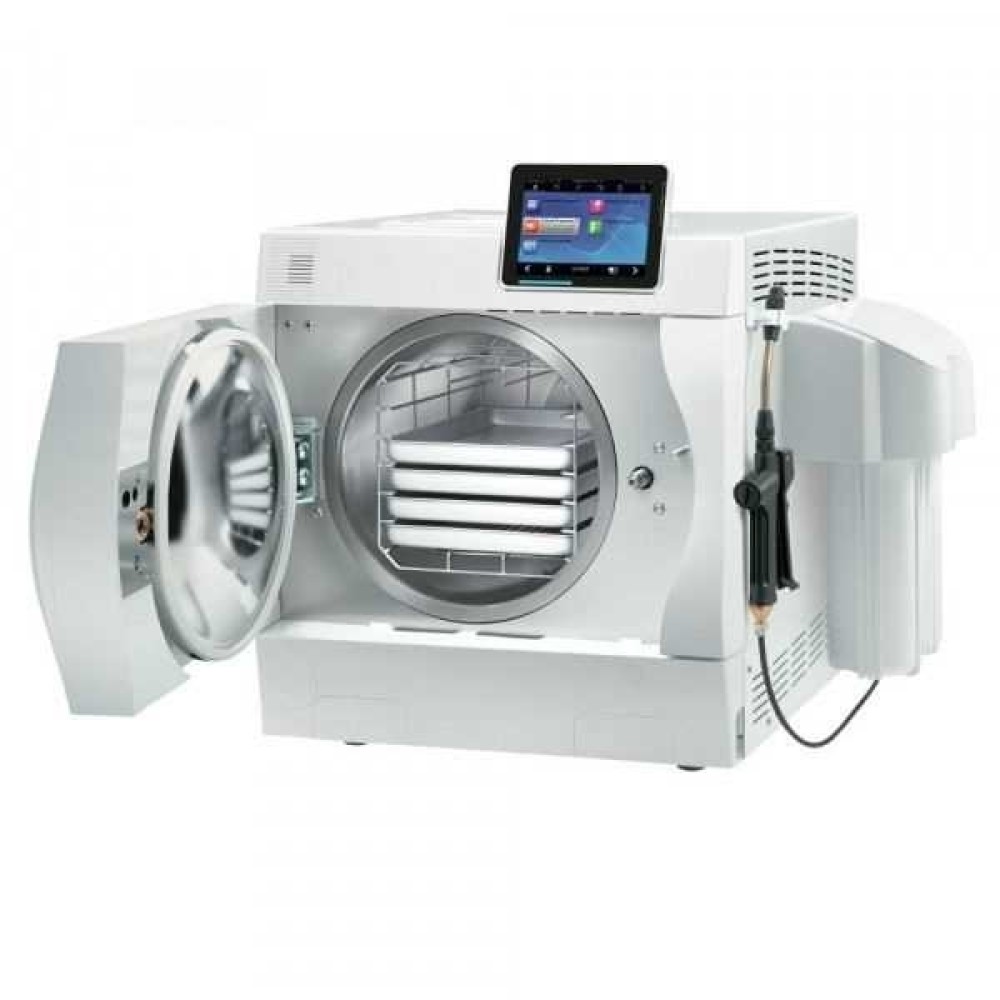 Автономный автоклав класса В, требующий подключения лишь к электричеству. Для размещения стерилизуемых изделий камера оснащена каркасом с 6 лотками, подходящим также для установки 3 стандартных кассет. Наконечники. стерилизуемые без упаковки, можно вынимать уже через 10 минут (включая время сушки), а упакованные через 17 минут. Более того, 5 кг инструментов в упаковке вы сможете простерилизовать и высушить всего за 20 минут вполовину быстрее, чем в других автоклавах класса В!