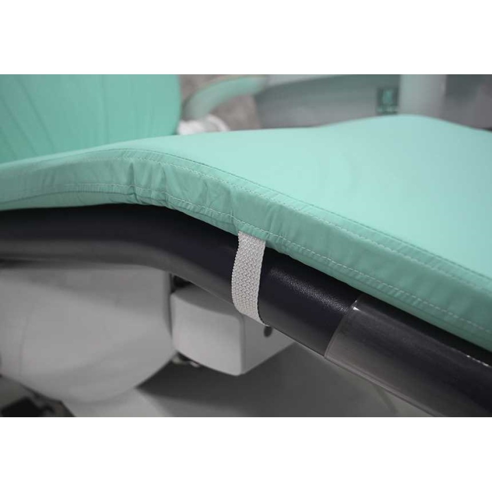 Для крепления стоматологического матраса к Вашему креслу используются стропы и полуавтоматические застежки (фастексы). За счет которых можно быстро и надежно зафиксировать матрас на любой установке.