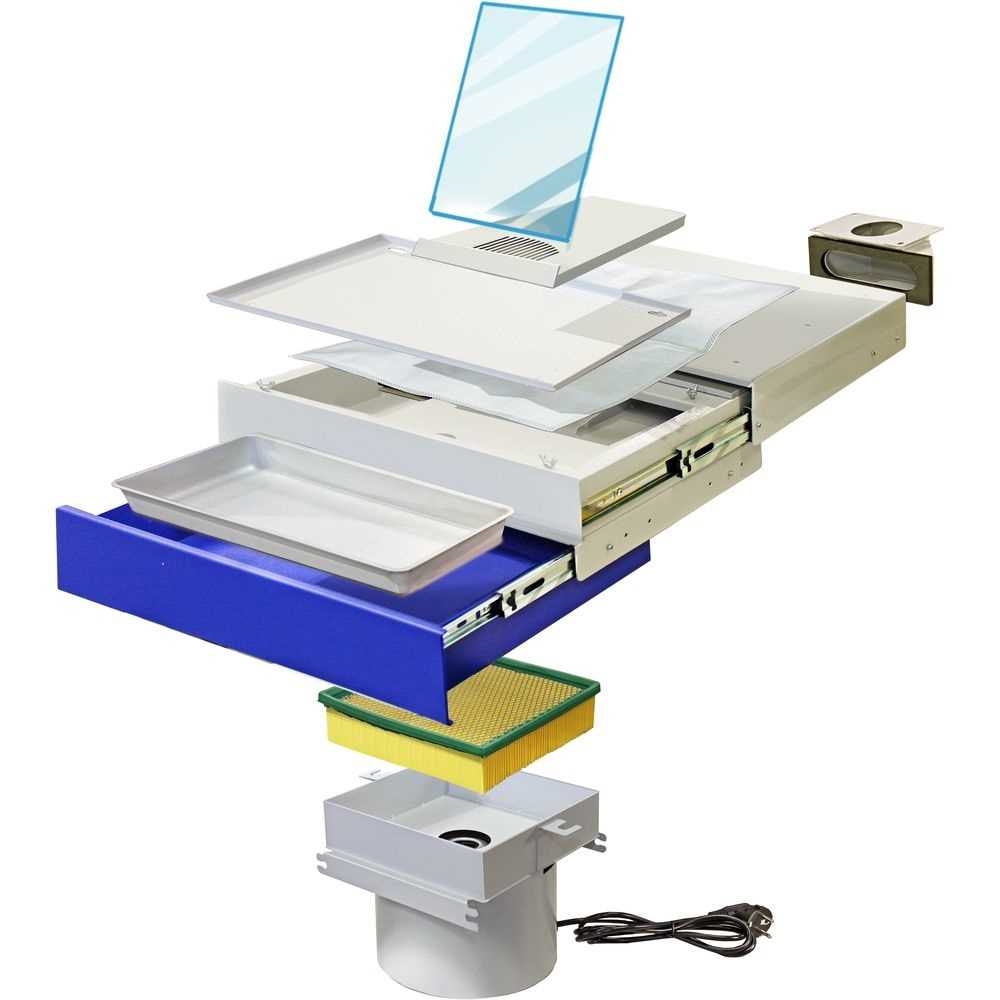 ВМУ 2.0 МАСТЕР НЬЮ - встраиваемая под столешницу вытяжная система для столов серии СЗТ 4.3 МАСТЕР (МИНИ). Оригинальные технические решения обеспечивают комфортный уровень шума, удобное обслуживание.