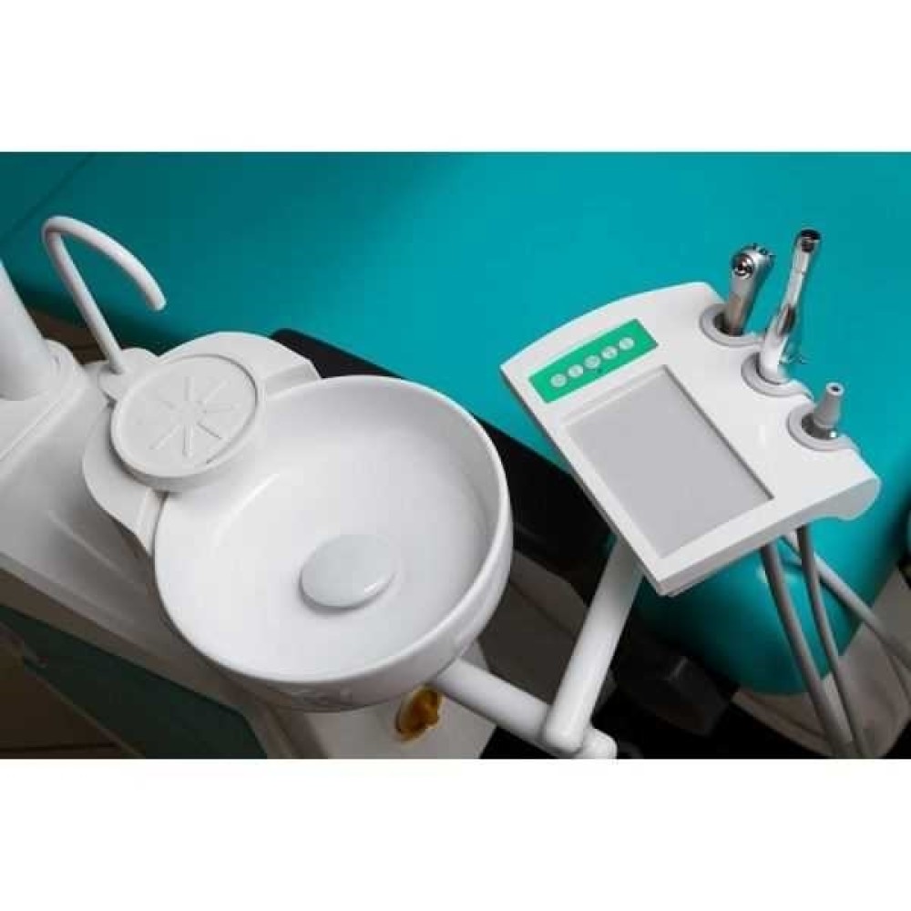 - Врачебный модуль имеет пантограф с пневмотормозом. Сенсорный блок управления креслом и плевательницей. Пять выходов М4 и водовоздушный спрей. Подача инструментов нижняя(верхняя).
